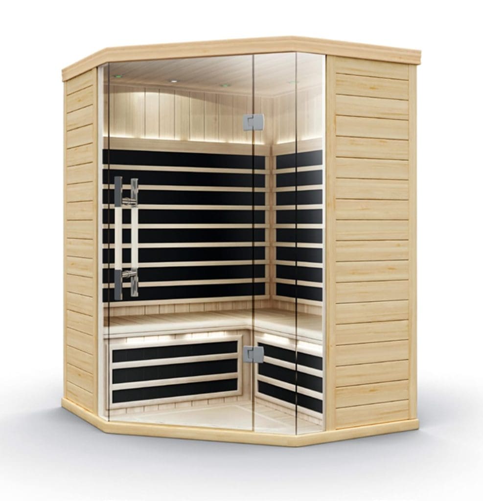 The S870 is a 3 person corner Far-Infrared Sauna Low EMR and Low EF Radiation throughout the entire sauna.