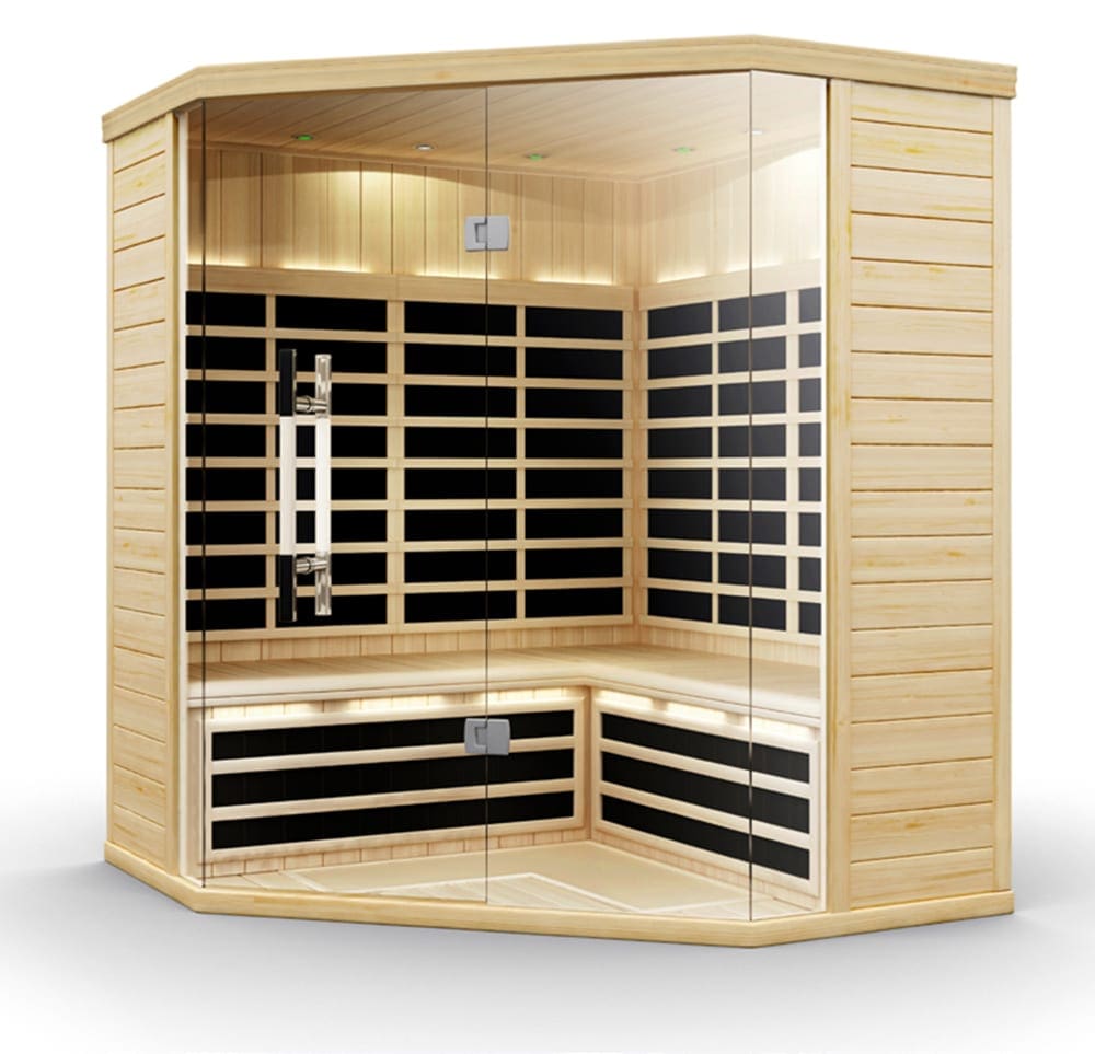 The S880 is a 4 person corner Far-Infrared Sauna. Low EMR and Low EF Radiation throughout the entire sauna.