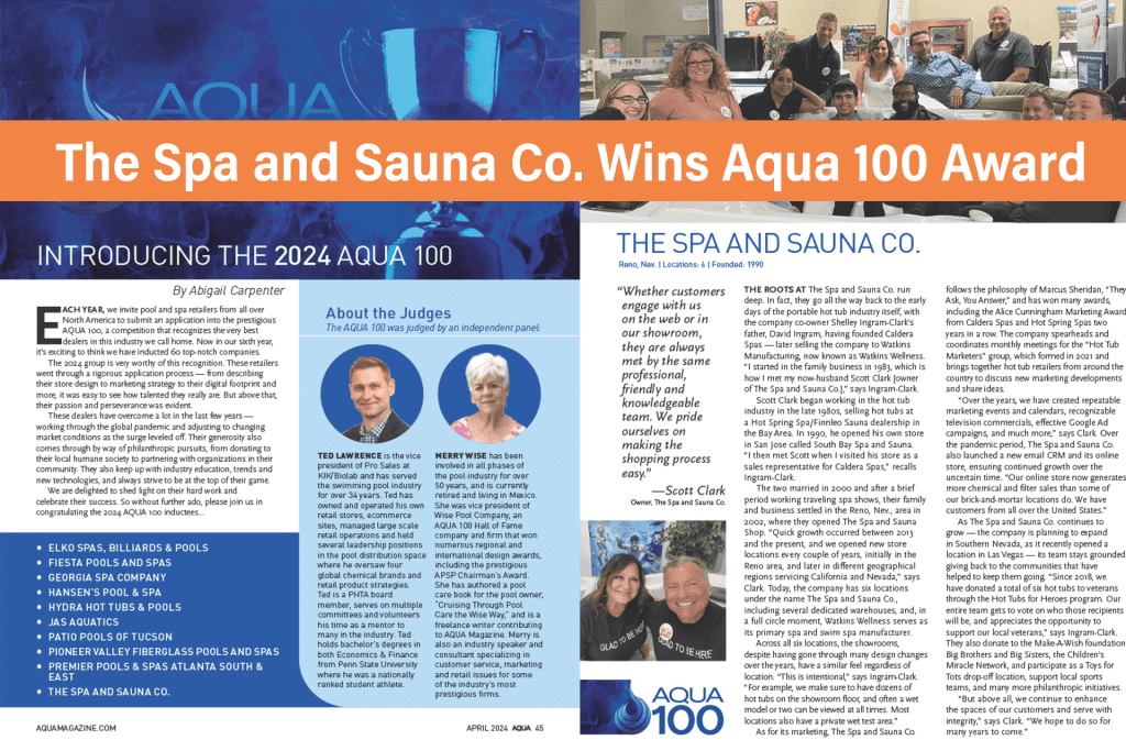 The Spa and Sauna Co. Wins Aqua 100 Award